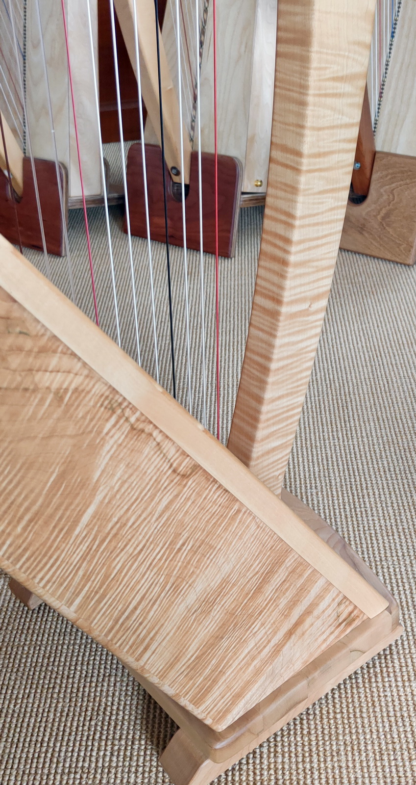 Eine aufregend gemaserte Harfe aus der Harfenbaumanufaktur Schupp.